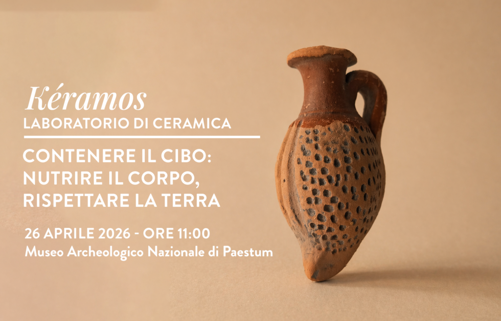 Domenica 26 aprile 2026, alle ore 11:00, il Museo Archeologico Nazionale di Paestum ospiterà un nuovo appuntamento del laboratorio di ceramica Kéramos dal titolo “Contenere il cibo: nutrire il corpo,…